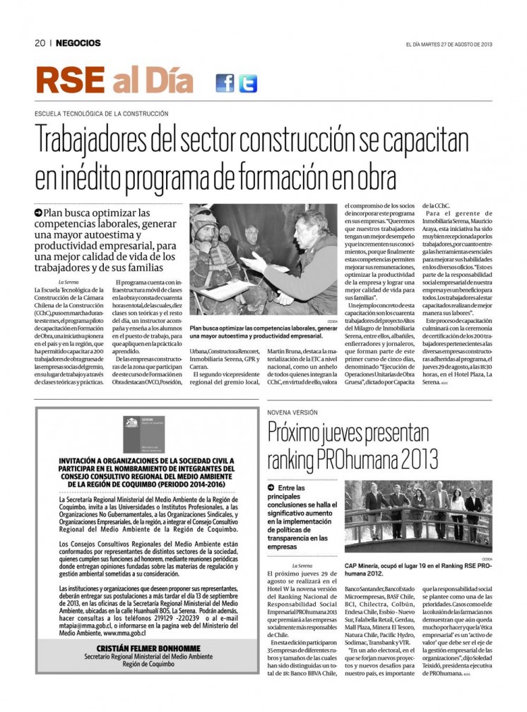 Diario El Día informa de Ranking Nacional de RSE |