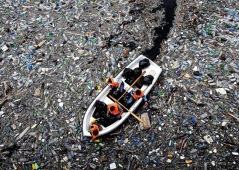 ![]() El plástico oceánico ocupa más de 16 millones de kilómetros cuadrados (casi como Rusia)Se les llama parches o sopas de plástico, y son enormes áreas de objetos de plástico de todo tipo que van girando siguiendo las corrientes marítimas, abarcando buena parte de los océanos. Los animales, desde los peces hasta las aves, se los tragan, y su misma presencia altera los ecosistemas de un modo nefasto, afectando, lógicamente a la cadena alimentaria.