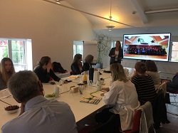 Allí los recibió la Vicedirectora, Eva Grambye, quien, se refirió a sus políticas de trabajo, señalando que “es inteligente respetar los derechos humanas, es una responsabilidad y oportunidad para Estados y Empresas” Asimismom destacó que “El trabajo que ustedes realizan se relaciona con los ODS ya que cada uno se basa en los derechos humanos… al trabajar en los DDHH ayudan a cumplir los ODS”. Finalmente, destacó que “La desigualdad se ha identificado como el mayor riesgo para las Empresas y la promoción de los DDHH lo minimiza”.