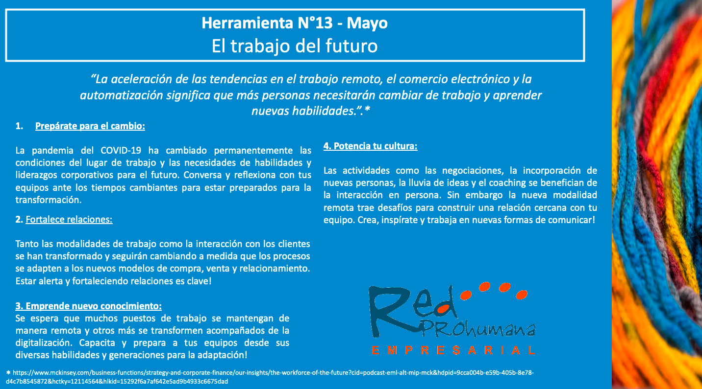 En esta transformación de reglas histórico a nivel local y global, es cuando más se necesita generar una voz consensuada de los líderes, empresas y organizaciones que han construido la sustentabilidad empresarial estos últimos 25 años junto a PROhumana. Desde aquí se renueva la RED PROhumana generando intercambio, vinculación y CO-creación entre líderes y organizaciones. Revisa los detalles aquí