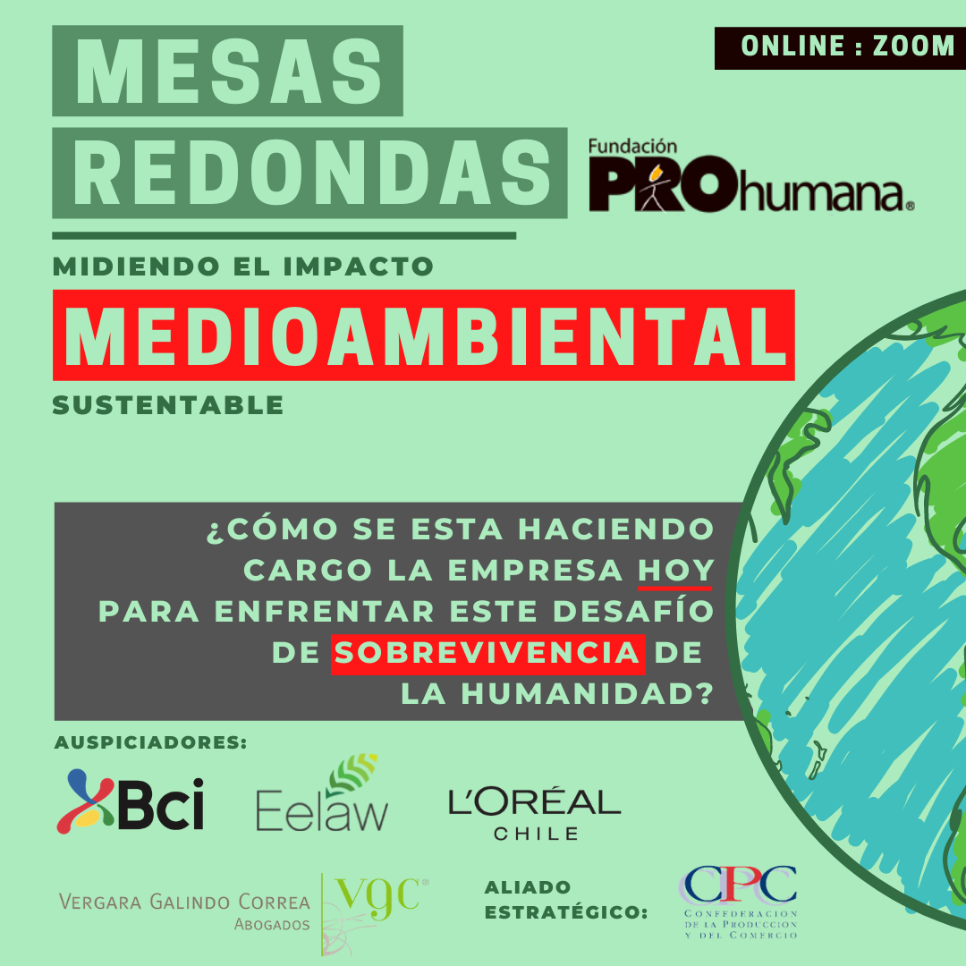 La realidad ambiental actual y las urgencias del planeta en esta materia -más las exigencias del mercado y de los fondos de inversión- están desafiando a las empresas en Chile a gestionar sustentablemente los aspectos medioambientales que forman parte del negocio y entorno. De aquí nacen las próximas Mesas Redondas PROhumana.