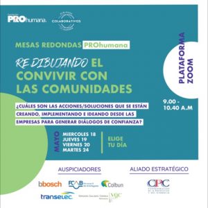 ![]() Mesa Redonda Re.dibujando el Convivir con las ComunidadesPublished 20 Mayo, 2022 | Conocimiento Sustentable, Actualidad Han sido 3 jornadas de diálogo con 3o líderes empresariales, donde se ha buscado responder a la pregunta ¿Cuáles son las acciones/soluciones que se están creando, implementando e ideando desde las empresas para generar diálogos de confianza? Atentos al lanzamiento de este próximo Estudio de Mesas Redondas PROhumana