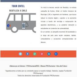 It is of vital importance to promote sustainability between all actors of the national and international reality – companies, governments, citizens, civic organizations, educational institutions, academics, opinion leaders, among others. It is because of that, among a lot of other event, we in 2002 organized “La OTRA Feria de Responsabilidad Social” and that we annually conduct the Tours of International Learning in Sustainability to countries like Canada, England, Holland, Spain and Brazil, where we promote the knowledge and the relations between protagonists of social responsibility in Chile and in the countries we visit, learning about their progress and innovations in the three sustainable issues, economic, social and environmental, with companies, organizations from the state and civic organizations.