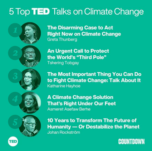 ![]() Top 5 de los mejores TED Talks sobre Cambio ClimáticoPublished 21 Abril, 2021 | Conocimiento Sustentable, Actualidad El cambio climático es real y nos afecta a tod@s.. todos los días! Entonces, ¿qué podemos hacer para combatirlo y salvar al planeta? Estas 5 inspiradoras charlas TED comparten diferentes enfoques que podemos adoptar para lograr un cambio duradero, desde un plan para absorber el carbono del aire hasta el poder de simplemente hablar sobre este tema crítico con sus amigos y familiares. Publicaciones no relacionadas. |