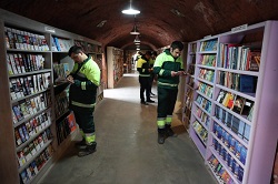 ![]() Trabajadores de la basura crean biblioteca con libros que son desechados¿Qué ocurre con los libros que los lectores deciden tirar para hacer hueco en sus estanterías? En Ankara, los volúmenes abandonados reviven en las paredes de una antigua fábrica de ladrillos, conformando una sorprendente biblioteca. Allí, un grupo de basureros de la capital turca instaló, hace siete meses, una biblioteca que cuenta ya con más de 4.750 obras, recuperadas de la basura en sus horas de trabajo.